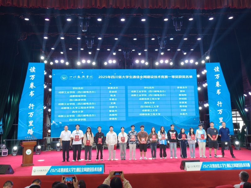 10月18日,由四川省教育厅主办的“2025年四川省大学生通信全网建设技术竞赛”决赛在四川旅游学院圆满落幕。我校学子凭借出色的专业技能、扎实的工程实践能力和稳定的临场发挥,在本届高水平竞赛中斩获多项大奖,取得了丰硕成果。