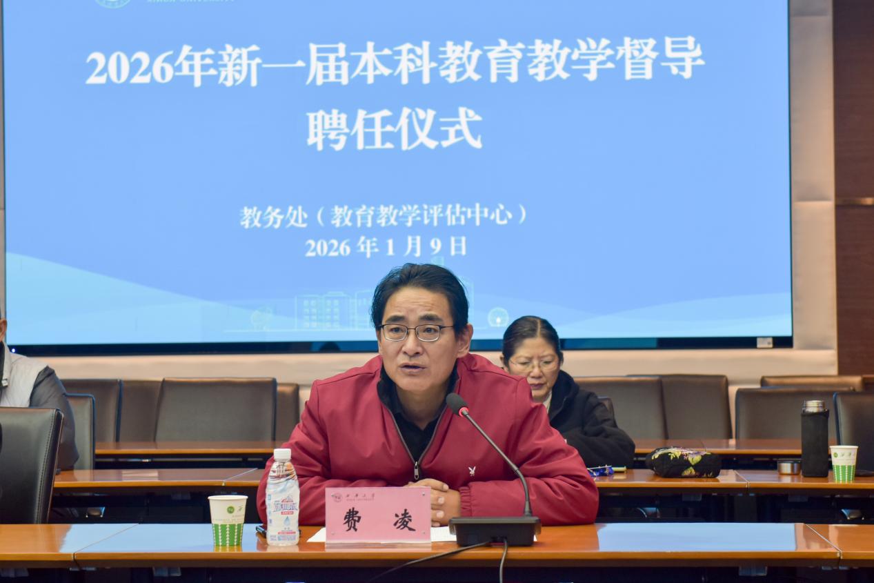 1月9日,学校在办公楼101会议召开2026年新一届本科教育教学督导聘任仪式,进一步推动教育教学改革,提升人才培养质量。校党委常委、副校长费凌出席会议并讲话,教务处处长兼教育教学评估中心主任彭必友主持,全体本科教学督导参加聘任仪式。