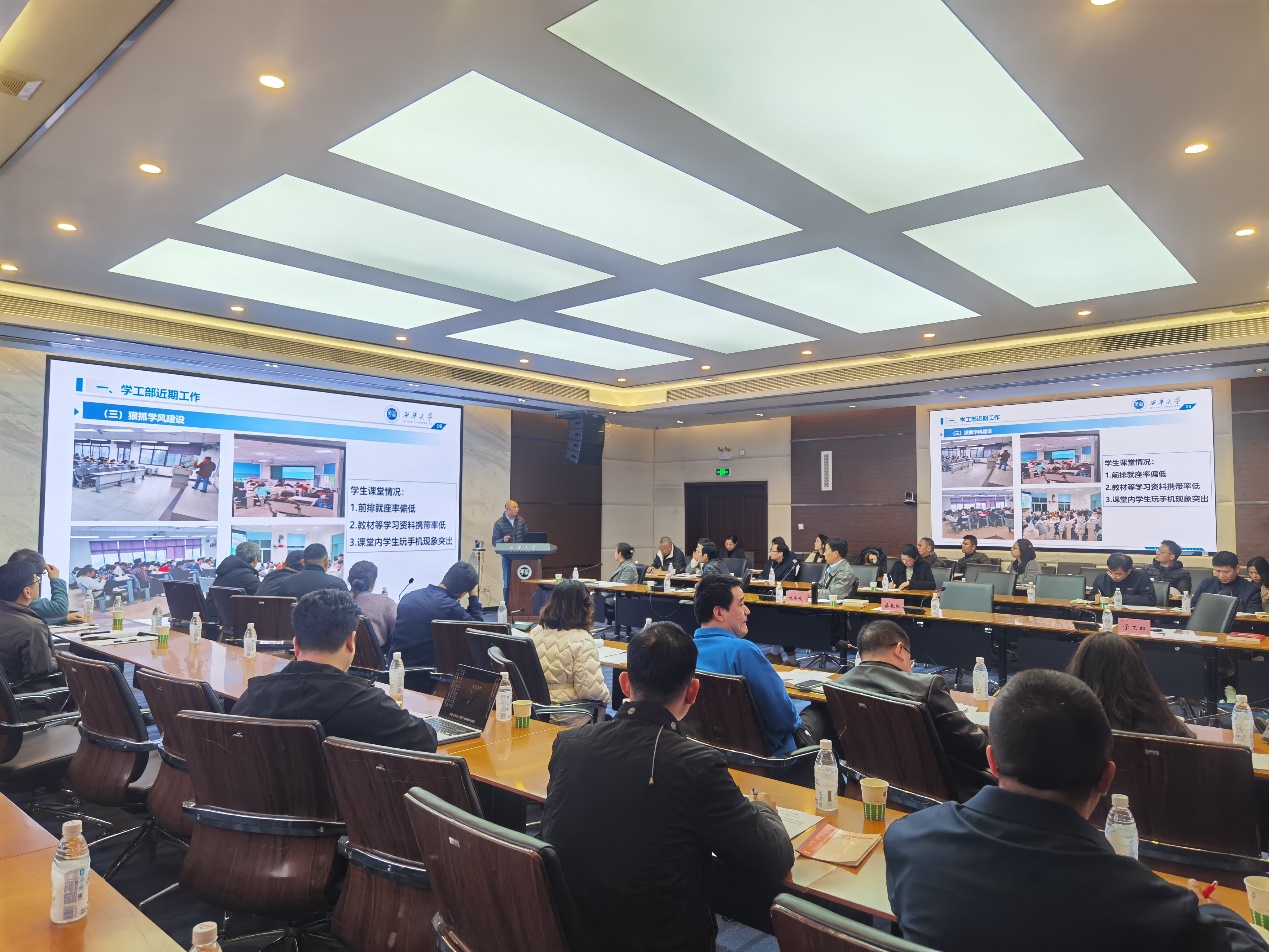 邵永波副校长在讲话中对近期学校教学工作的推进成效予以肯定,并结合新学期教学工作重点提出工作要求。他强调,教学工作是学校的中心工作,各单位要提高思想认识,强化责任担当,聚焦教学运行规范、专业建设提质、人才培养创新等核心任务,抓实抓细各项工作落实;要以专业认证为抓手,对标认证标准补齐建设短板,推动学校专业建设水平整体提升;要注重教学改革与实践深度融合,深化AI赋能教育教学改革,不断完善人才培养体系,切实提升人才培养质量。