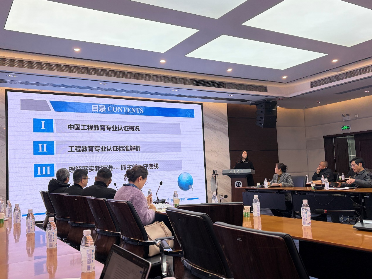 会议还对专业认证重点工作推进进行专项部署。专业认证督导蔡长韬围绕2024版工程教育专业认证标准作专题解读,深入阐释认证核心理念与标准变化,从学生、培养目标等八个方面解析标准调整要点,明确“抓主线、守底线”的落实要求,为各专业推进认证工作明晰思路、提供实操指引。食品与生物工程学院、机械工程学院等6个工科类学院结合专业建设实际,分享工程教育认证推进经验,并开展交流研讨,为后续高效推进认证工作凝聚共识、汇聚思路。